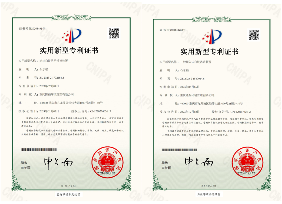 白蟻監(jiān)測控制裝置防治白蟻的原理是將白蟻喜食且對白蟻具有極強引誘力的木塊固定在監(jiān)測控制裝置內(nèi),然后將監(jiān)測控制裝置按一定的要求安裝在需保護的房屋、樹木周圍或堤壩內(nèi)、外坡及坡頂土壤中,外出覓食的工蟻到達監(jiān)測控制裝置周圍一定距離處的土壤中后,由于受裝置內(nèi)木塊釋放在土壤中的引誘物質的強烈吸引,迅速將蟻路修筑至監(jiān)測控制裝置,并紛紛進入裝置內(nèi)取食。